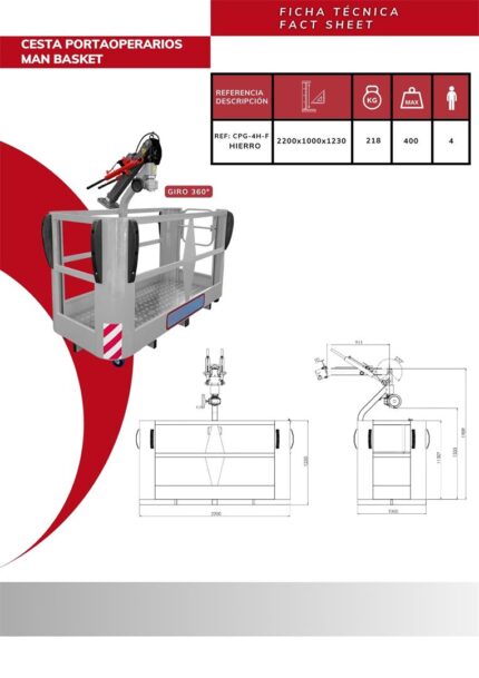 Cesta portaoperarios de hierro giratoria regulable en altura para 4 personas CPGR-4H-F