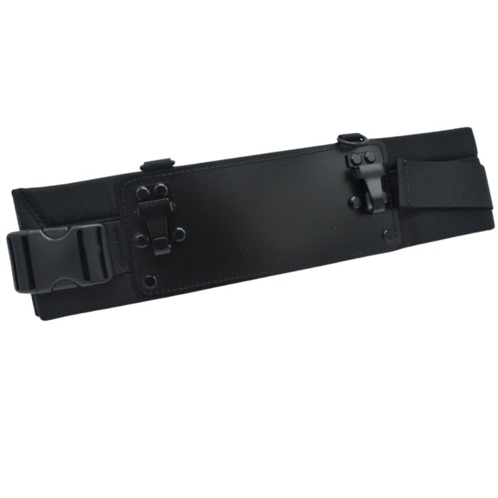 Cinturón para mando Scanreco. Con el cinturón siempre puede tener su unidad transmisora cerca. El transmisor está enganchado en los clips del cinturón.