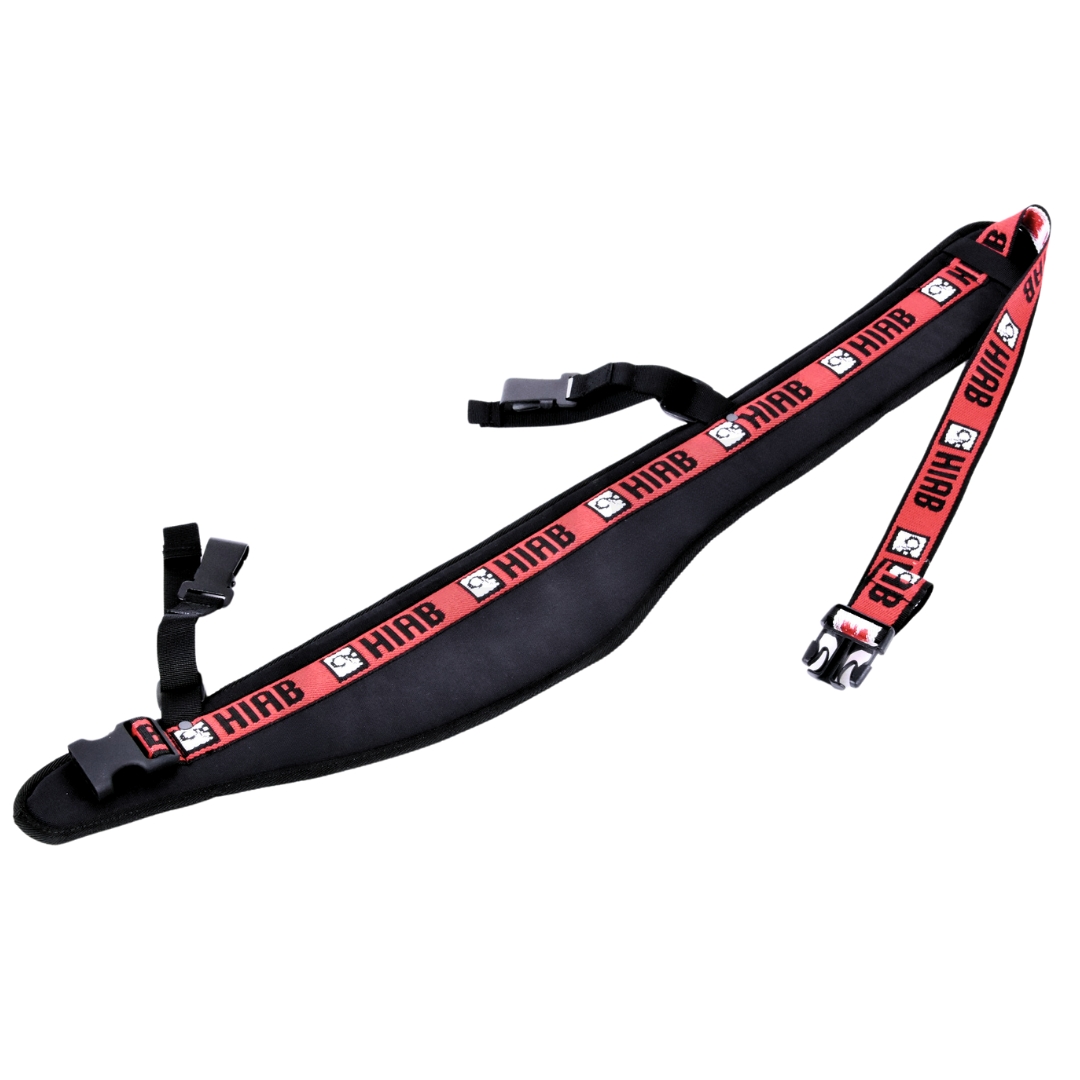 Cinturón para mandos a distancia Hiab. Con este cinturón siempre puede tener su unidad transmisora cerca. El transmisor se engancha en los clips de la correa.
