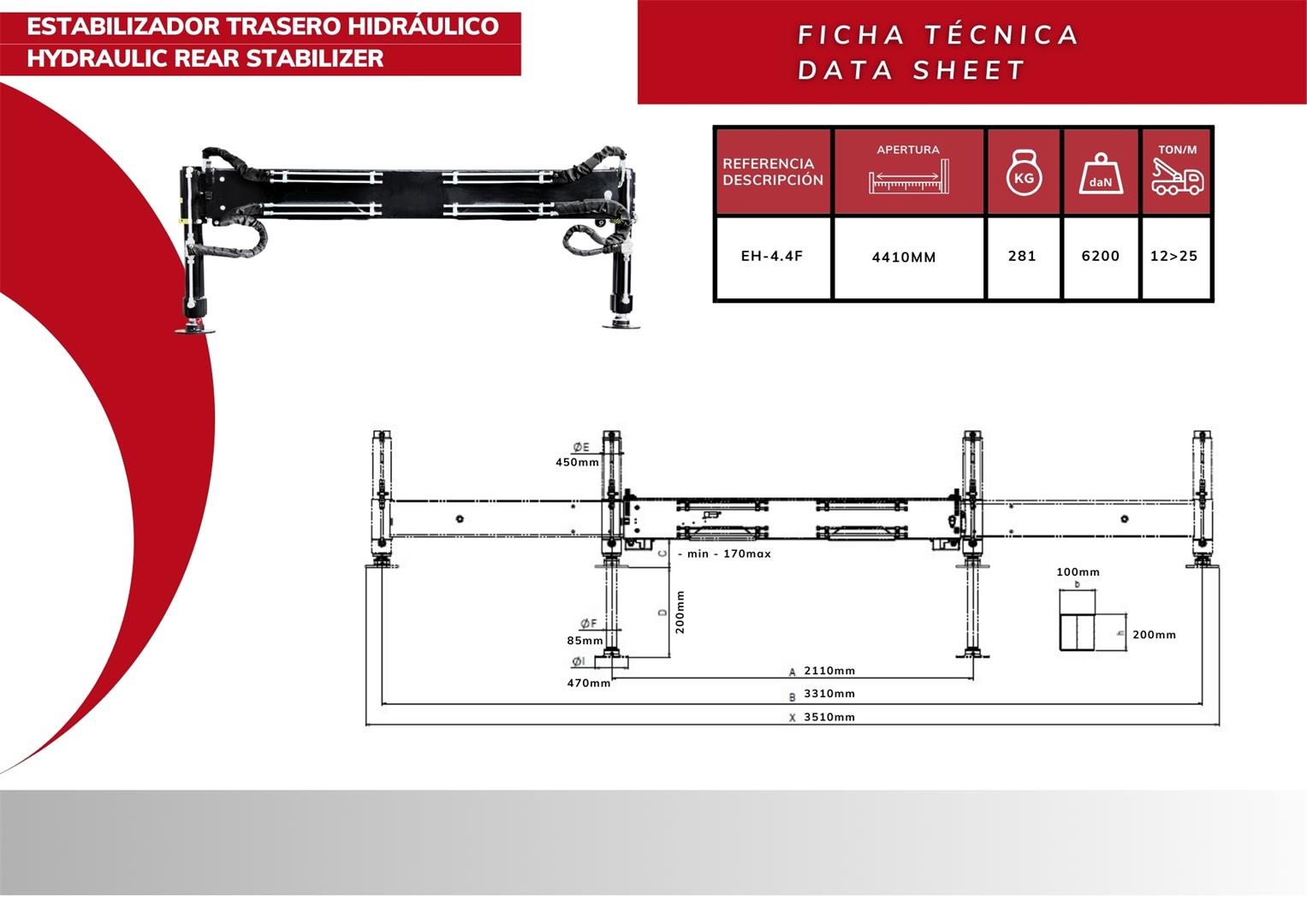 Estabilizador trasero hidráulico, apertura 4410 mm EH-4.4F