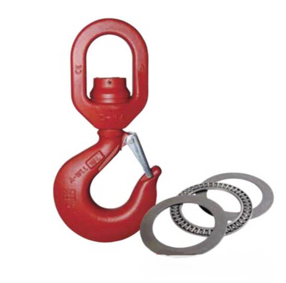 Gancho giratorio con rodamiento. Ofrecemos una amplia gama de ganchos para grúas con capacidades desde 1 a 32 toneladas.Los ganchos han sido fabricados en acero de aleación forjado, templado, presenta un sistema de autocierre