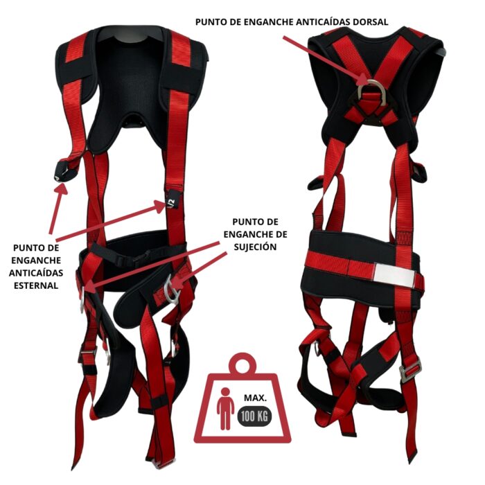 • Carga máxima arnés: 100 kg.