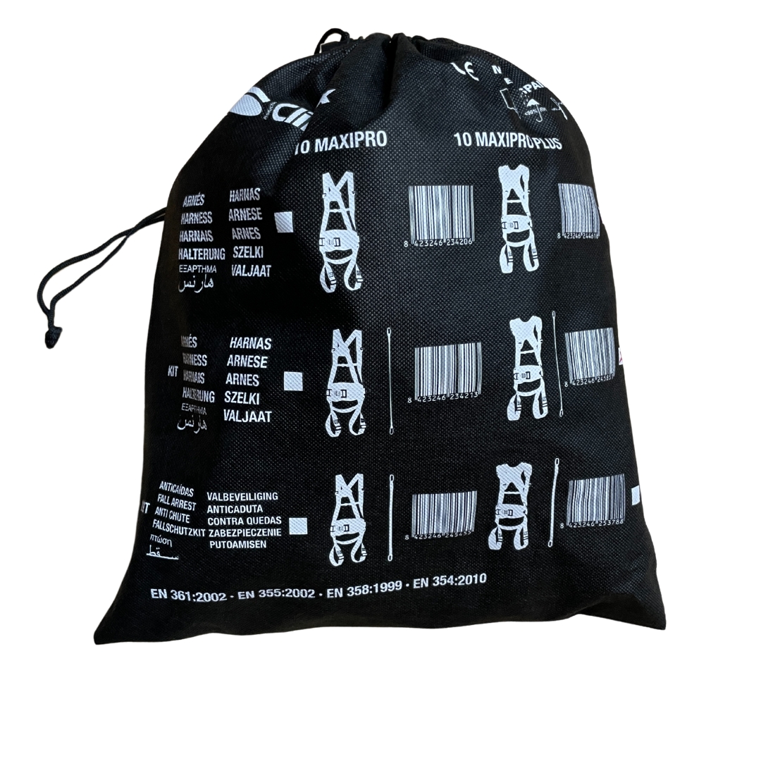 - Arnés: EN 361:2002, EN 358:2018, EN 354:2010, EN 362:2004, Reglamento (UE) 2016/425.