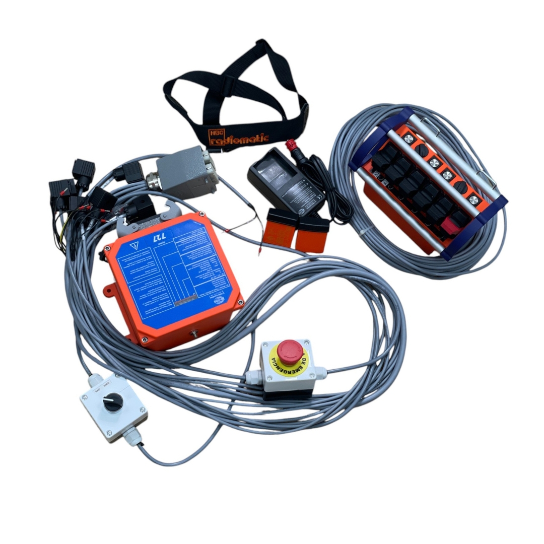 - cableado con selector radio/manual + seta de seguridad + conectores para módulos eléctricos y DV + cable de opciones (acelerador, pare, arranque, acelerador automático, bocina, velocidades y limitaciones del radio)