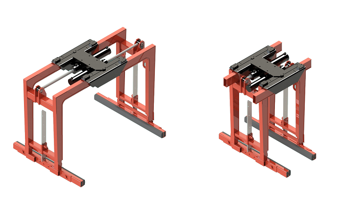 Los brazos de agarre tienen altura ajustable y esto permite que el agarre se adapte a diferentes tipos y tamaños de carga. Las bandas de goma ofrecen una alta adherencia a la carga.Las gomas se fabrican en material EPDM para poder trabajar en diferentes condiciones climáticas.