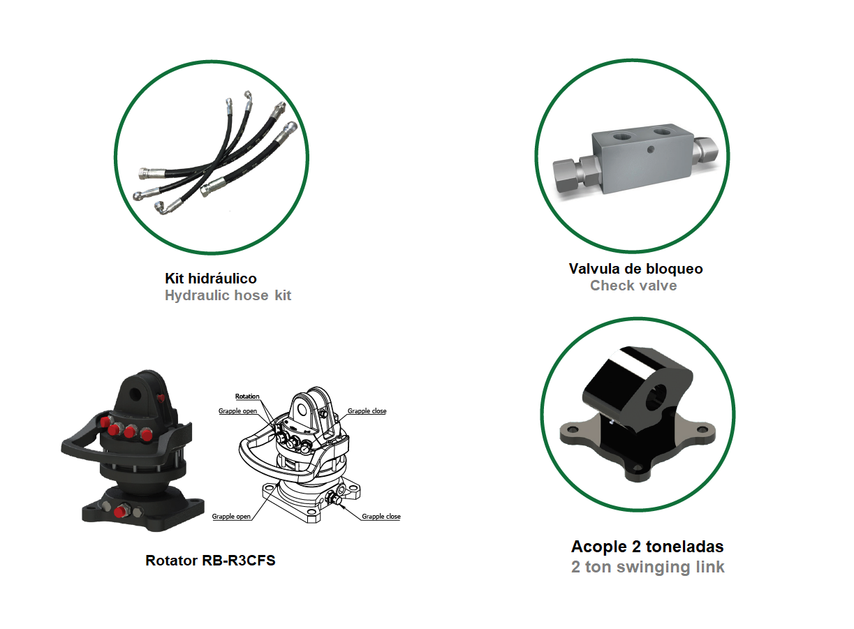 Kit de mangueras hidráulicas para la conexión del pulpo al rotator